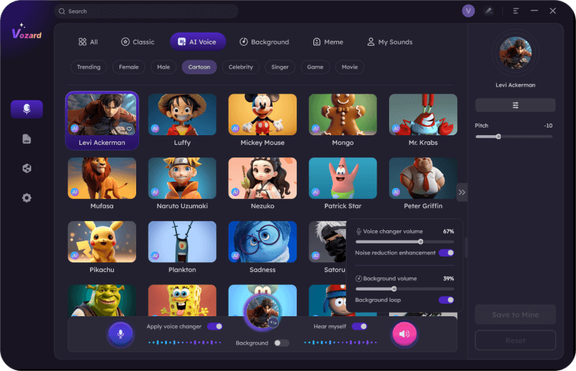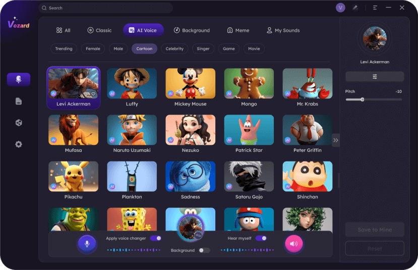 Adopting AI-enhanced algorithms to change your voice to the target character, Vozard real-time voice changer, leads to a natural and lifelike voice change.