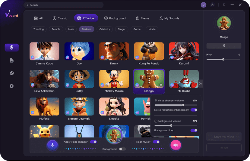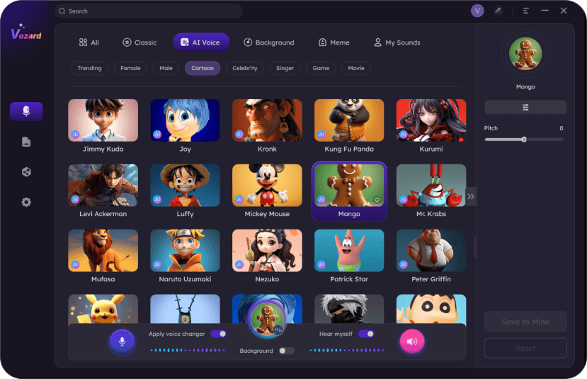 Adopting AI-enhanced algorithms to change your voice to the target character, Vozard real-time voice changer, leads to a natural and lifelike voice change.
