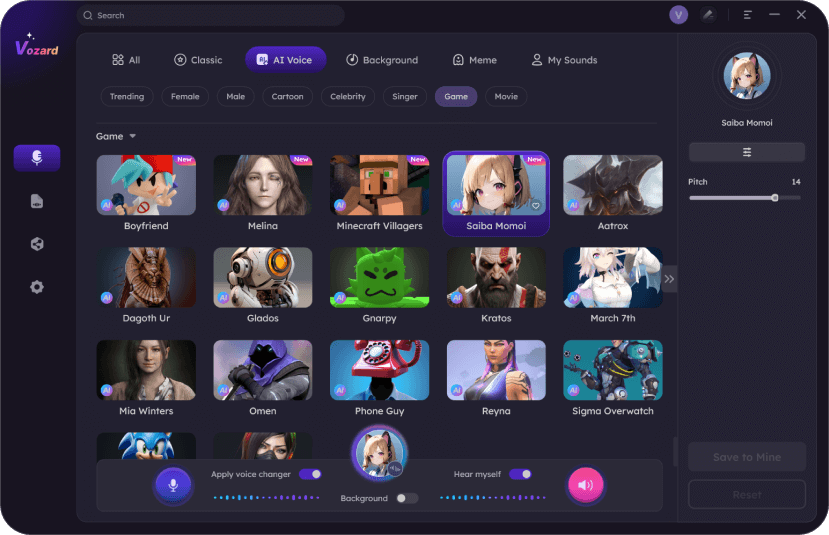 To change your voice into Saiba Momoi on your PC, you can use AI voice changer software like Vozard. Download and install the application, adjust the settings, select and download the Saiba Momoi AI voice effect, and start voice-changing.