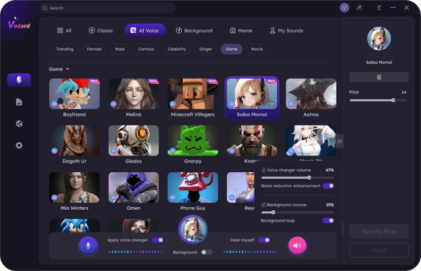 Adopting AI-enhanced algorithms to change your voice to the target character, Vozard real-time voice changer, leads to a natural and lifelike voice change.