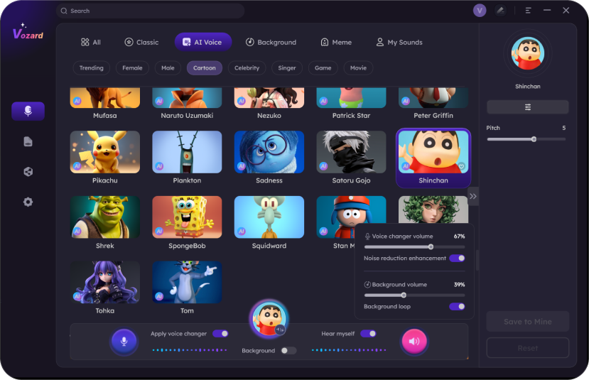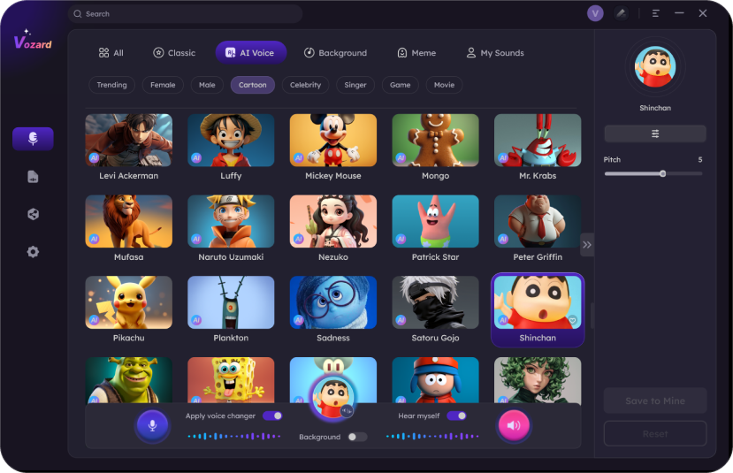 Adopting AI-enhanced algorithms to change your voice to the target character, Vozard real-time voice changer, leads to a natural and lifelike voice change.