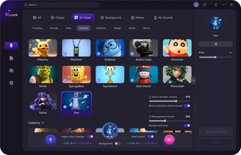 Adopting AI-enhanced algorithms to change your voice to the target character, Vozard real-time voice changer, leads to a natural and lifelike voice change.