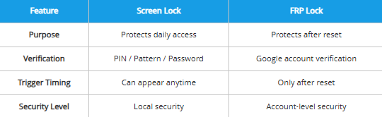 Android FRP lock removal explained. Learn how Factory Reset Protection works, when FRP is triggered, official Google verification methods, and common FRP bypass tools and limitations.