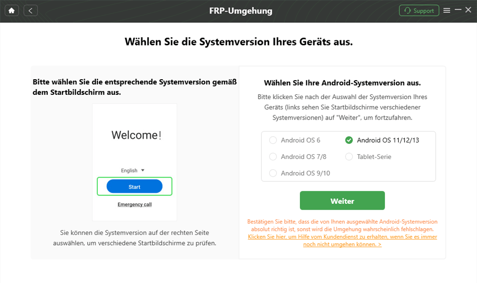 Schritt 5: Finden Sie die Nummer wie folgt > Dann wählen Sie Ihre Android-Version klicken Sie auf „Jetzt herunterladen“ > Dann beginnt die Umgehung.