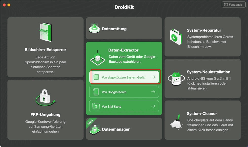 Schritt 1: Laden Sie iMobie DroidKit auf Ihren PC herunter und installieren Sie es > Starten Sie dann iMobie DroidKit und wählen Sie den Modus Von abgestürtztem System Gerät.