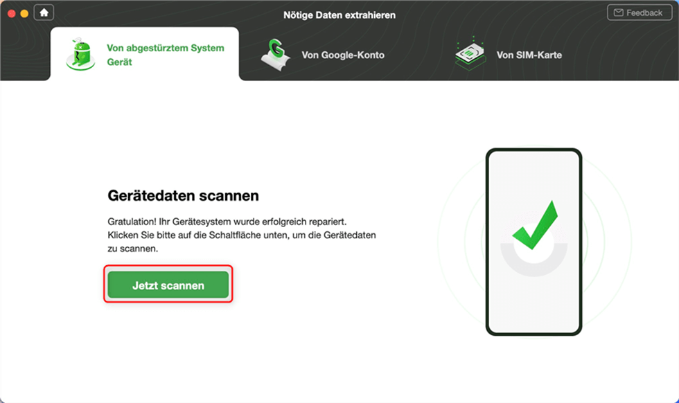 Schritt 6: Nach dem Behebung können Sie Ihre Daten scannen. Klicken Sie bitte auf Jetzt scannen.