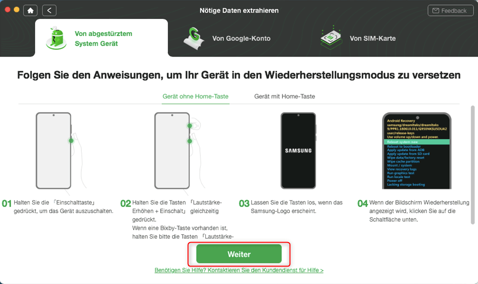 Schritt 3: Befolgen Sie bitte die Anweisungen, um Ihr Android-Gerät in den Wiederherstellungsmodus zu versetzen. Klicken Sie dann bitte auf Weiter.