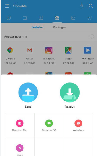 Als Erstes müssen Sie die Play Store-Seite von ShareMe aufrufen und die Anwendung auf beiden Geräten installieren. Starten Sie die App und geben Sie ihr die Erlaubnis, auf Ihre Daten zuzugreifen. Aktivieren Sie außerdem die Bluetooth- und WiFi-Funktion auf Ihren Handys, platzieren Sie sie in der Nähe und melden Sie sich bei der App an. Sie können nun auf die Schaltfläche “Senden” auf Ihrem Quelltelefon tippen.