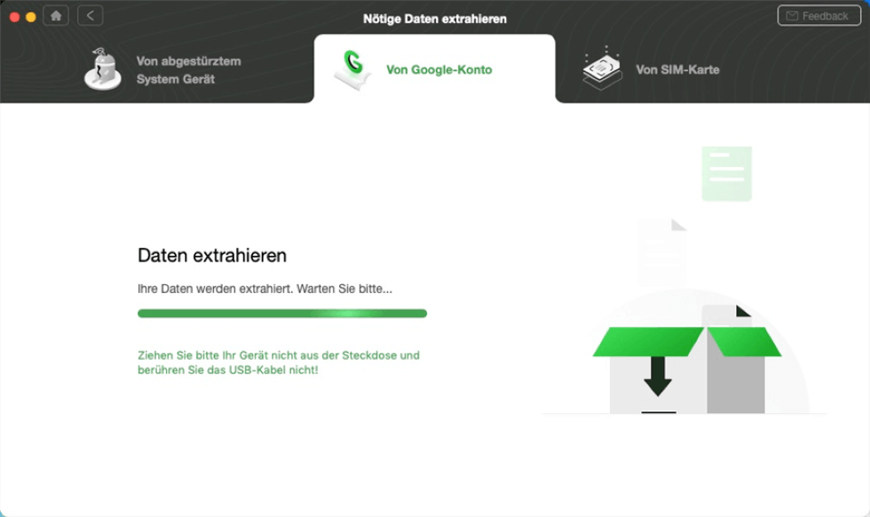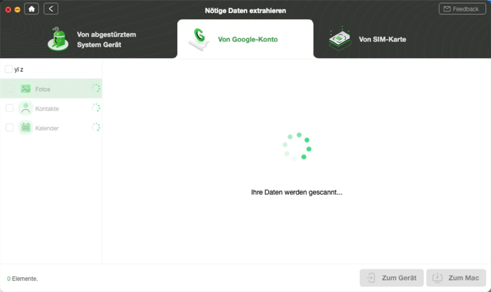 Sie können die gescannten Daten zum Extrahieren Zum Gerät oder Zum Mac auswählen. Warten Sie bitte auf den Extraktionsprozess