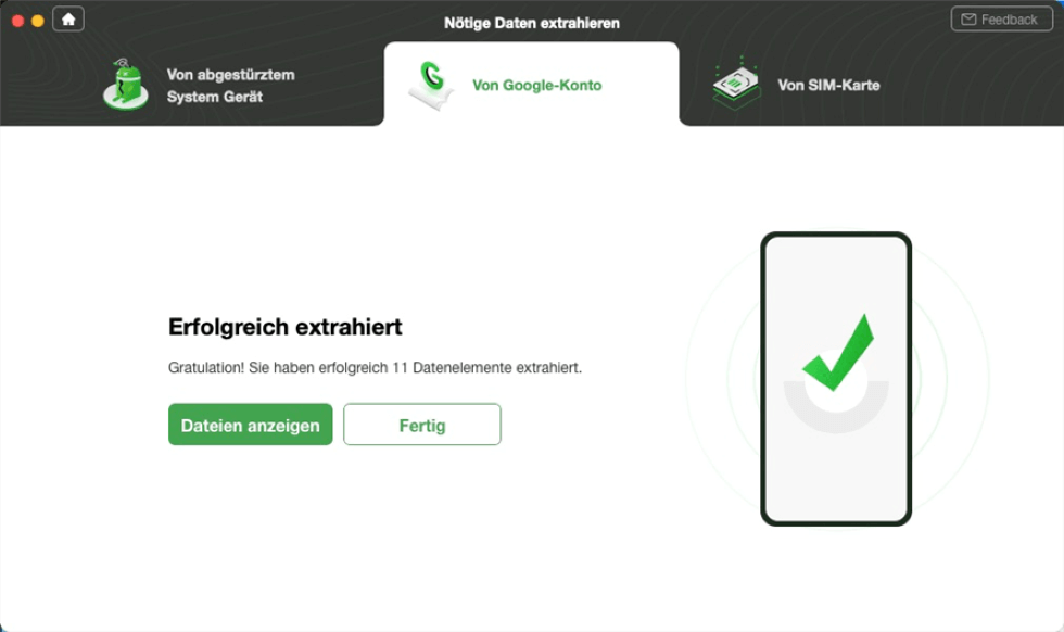 Schritt 1. Laden Sie DroidKit herunter und installieren Sie es auf Ihrem Computer. Starten Sie dann DroidKit auf Ihrem Computer und wählen Sie den Modus Daten-Extractor von Google-Konto.