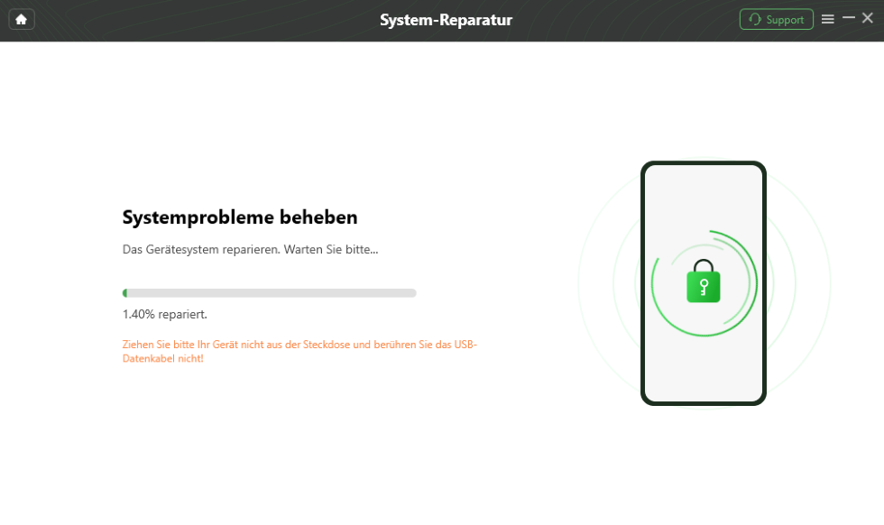 Die Reparatur wird nun automatisch durchgeführt und dauert in der Regel nur wenige Minuten. Nach erfolgreichem Abschluss wird eine Bestätigungsmeldung angezeigt.