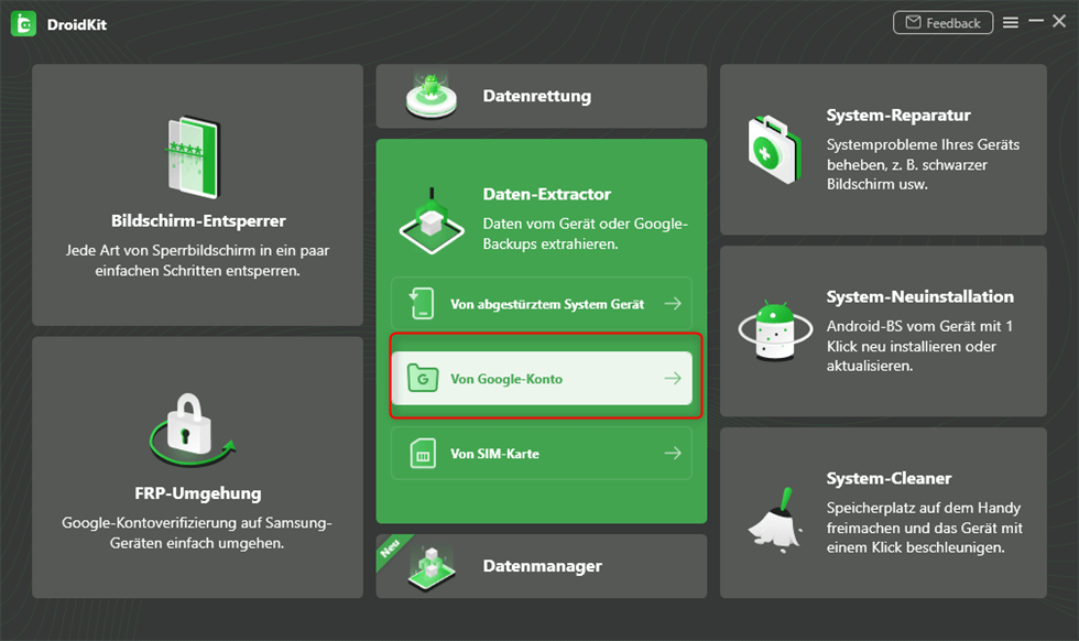 Mit DroidKit können Sie noch Android-Gerät aus Google wiederherstellen. Hier sind die Schritte: