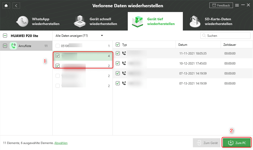 Schritt 5: Sie können die Daten in der Vorschau sehen. Wählen Sie die gewünschten Daten zur Wiederherstellung aus und klicken Sie entweder auf „Zum Gerät“ oder „Zum PC“, um sie zu extrahieren.