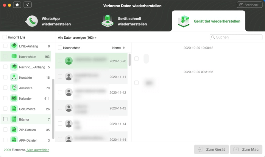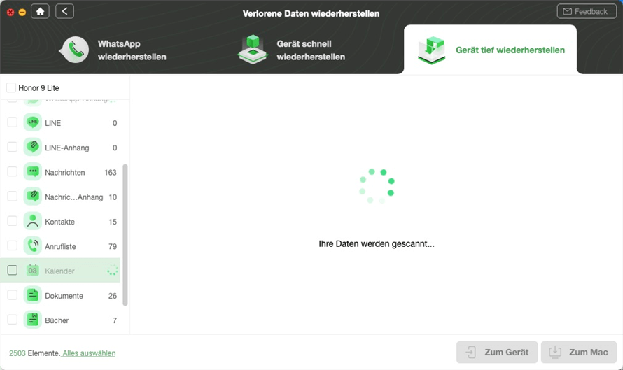 Sie können die gescannten Daten zur Wiederherstellung Zum GerätoderZum Macwählen. Wenn Sie Zum Macwählen, können Sie vor dem Exportieren Einstellungen für die Daten vornehmen.