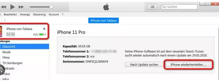 3. Klicken Sie in iTunes/Finder auf „Wiederherstellen“.