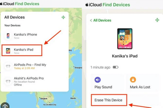 Prinzip: Sie senden über die iCloud-Website einen ferngesteuerten „Löschen“-Befehl an Ihr iPad. Dieser Befehl löscht alle Daten und Einstellungen auf dem iPad, einschließlich des Bildschirmpasscodes, und setzt es auf die Werkseinstellungen zurück.