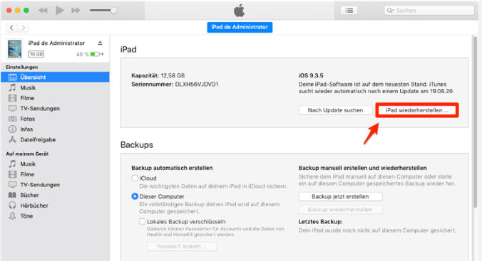 3. Wählen Sie oben Ihr iPad aus der Geräteliste aus.