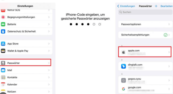 (Hinweis: Dieser Menüpunkt kann sich je nach iOS-Version auch unter „Einstellungen“ > „Passwörter & Accounts“ befinden.)