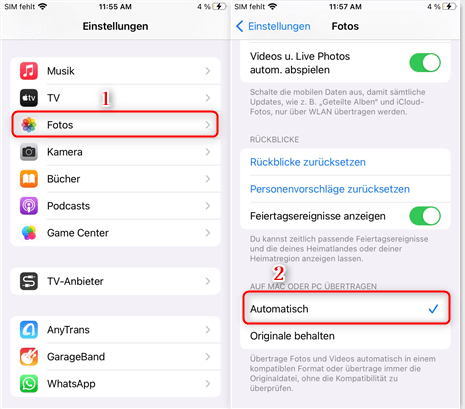 Schritte: Öffnen Sie „Einstellungen“ > Finden und drücken Sie „Fotos“ > Scrollen Sie nach unten und tippen Sie auf „Automatisch“.