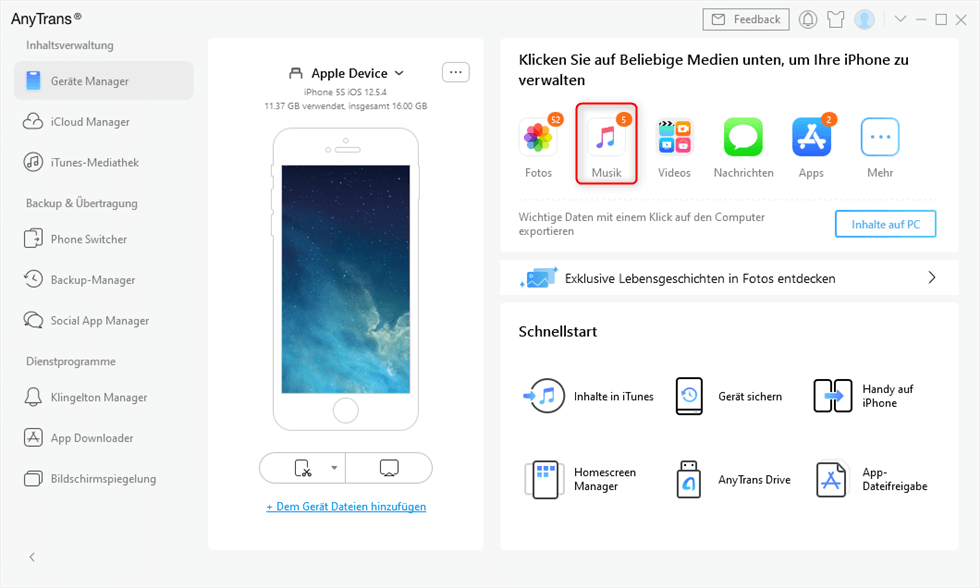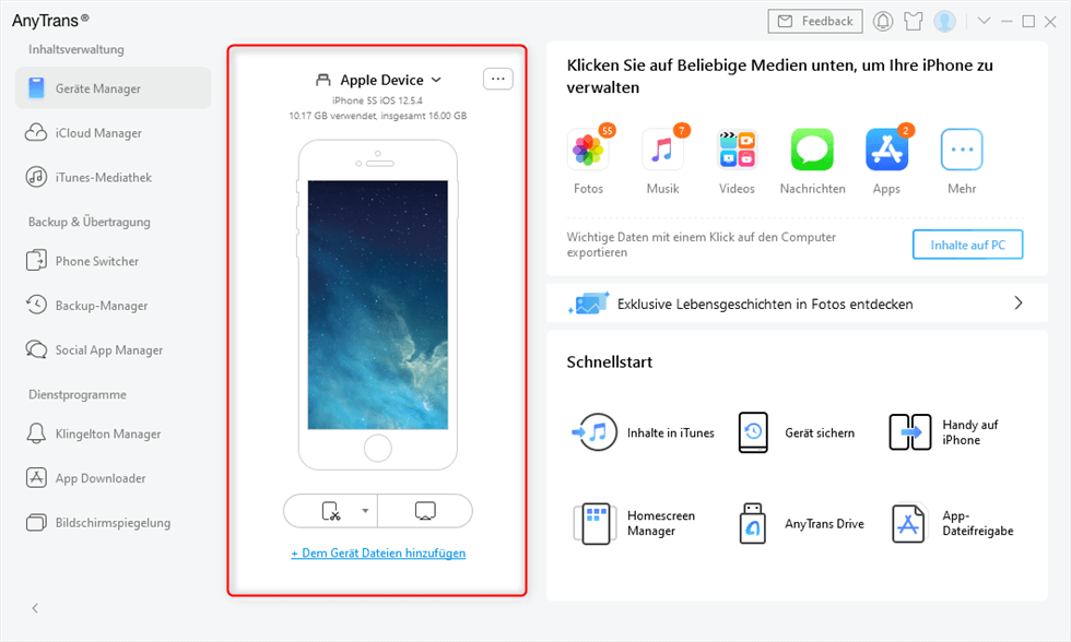 für iPhone-, iPad-, iPod-, iTunes- und iCloud-Inhalte für Windows und Mac. Mit AnyTrans können Sie iOS-Daten einfach, schnell und nach Wunsch übertragen, verwalten und sichern.