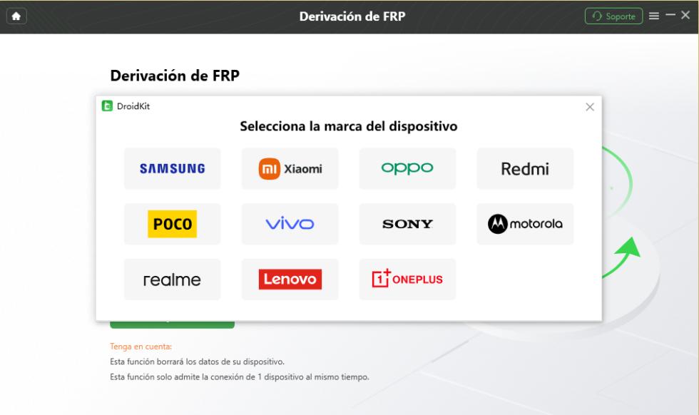 DroidKit permite omitir FRP en varias marcas de Android. Puedes elegir tu marca de Android haciendo clic en su logotipo.