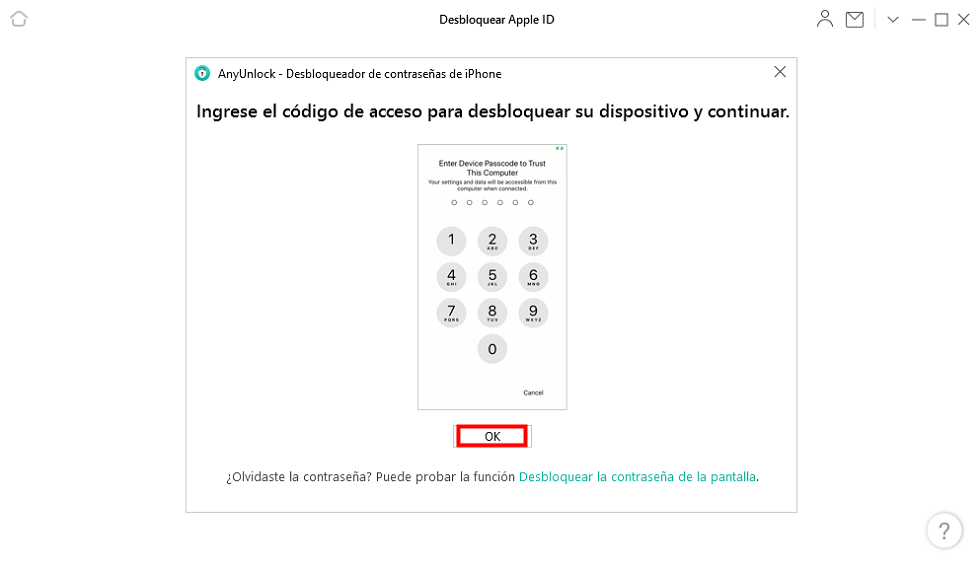 AnyUnlock desbloquear Apple id ingrasar el codigo de acceso