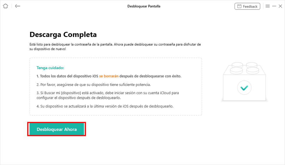Paso 3. Una vez finalizada la descarga del firmware, haz clic en la opción “Desbloquear ahora”. AnyUnlock desbloqueará la pantalla automáticamente con el código de acceso. No desconecte el dispositivo hasta que se reinicie.