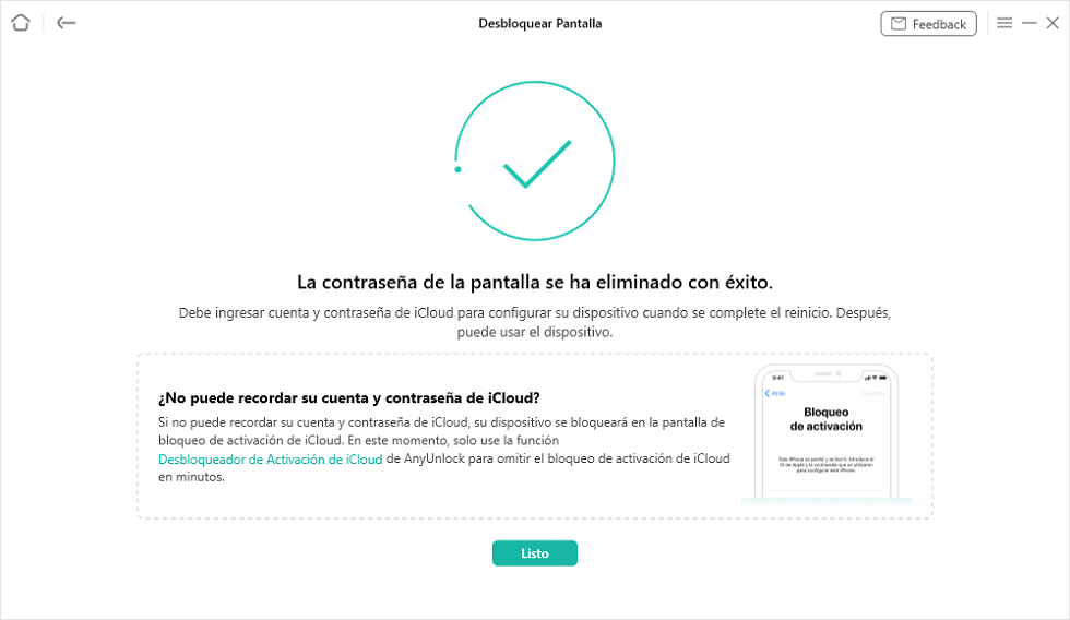 Paso 4. Cuando se complete el proceso, verás la interfaz “Código de acceso de pantalla eliminado exitosamente”.
