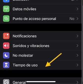 Paso 1. Abre Ajustes en tu dispositivo y desplázate un poco hacia abajo. Verás la opción “Tiempo de uso” en la interfaz. Simplemente pulsa esta opción.