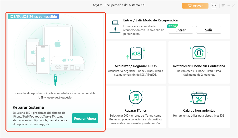 Cuando las soluciones habituales no resuelven el problema de batería que se agota en iOS 26, AnyFix ofrece una alternativa más fácil y confiable. Esta herramienta profesional de reparación del sistema iOS está diseñada para solucionar una amplia gama de problemas, incluyendo: