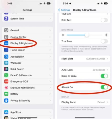Para reducir el drenaje de batería en iOS 26, primero revisa la función Always-On Display. Esta característica mantiene la pantalla del iPhone parcialmente encendida en todo momento, lo que genera un consumo constante de energía. Al desactivarla, eliminas este gasto en segundo plano y mejoras la duración de la batería.