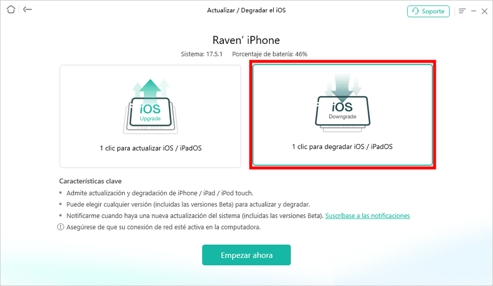 Paso 2. Selecciona Degradar iOS y haz clic en Empezar ahora.