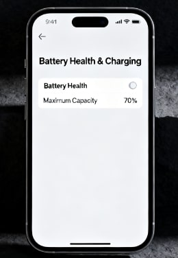 Paso 4. Tras reemplazarla, vuelve a Salud de la batería para confirmar que la capacidad máxima se restauró y el iPhone funciona correctamente.