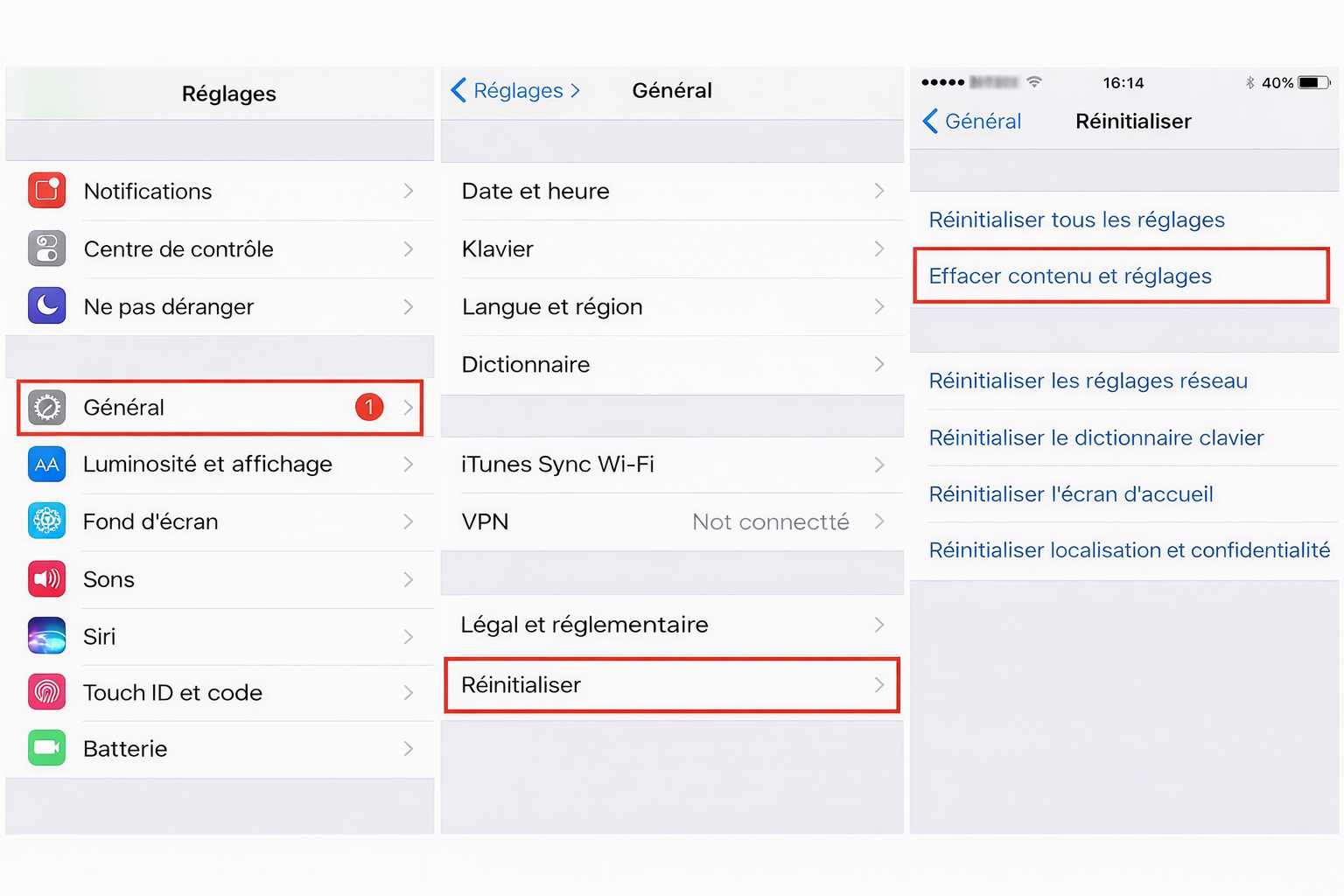 Attendez la fin du processus de réinitialisation, puis vous pouvez utiliser votre iPhone comme neuf. Notez que cette opération effacera toutes les données et paramètres de votre appareil : il est recommandé de sauvegarder votre iPhone avant de procéder.