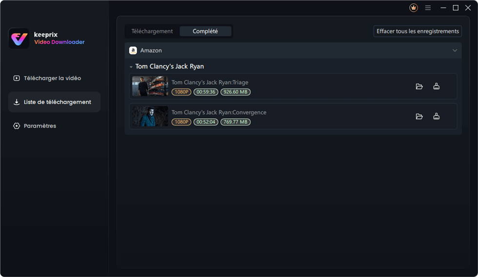 C’est tout pour cet article ! Choisissez la solution la plus adaptée à vos besoins. Télécharger Amazon Prime Video sur votre téléviseur n’est pas compliqué. Cependant, il est important de comprendre les limitations et la compatibilité des appareils. Si vous rencontrez des problèmes pendant la lecture, Keeprix Video Downloader vous permet de sauvegarder l’intégralité de l’application. Facile à utiliser, il est très performant. Essayez-le !