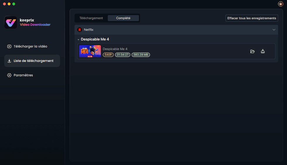 Télécharger des films Netflix sur Mac est souvent compliqué : les restrictions natives du système, les procédures manuelles fastidieuses peuvent gâcher l’expérience. Pour éviter ces tracas inutiles, nous vous recommandons vivement Keeprix Video Downloader : c’est la seule solution qui débloque ces contraintes, vous permettant d’obtenir vos films Netflix sur Mac en quelques clics seulement, sans compromettre la sécurité ni la qualité. Pour gagner plus de temps — allez l’essayer maintenant !