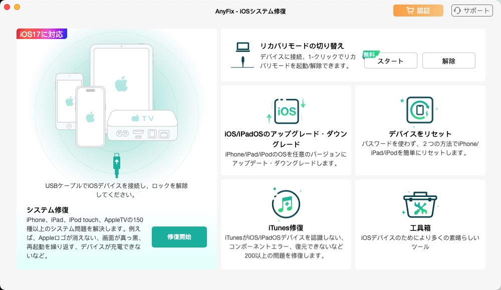 AppleとMicrosoftに認定された開発者として、AnyFixは、iPhone/iPadなどのiOSデバイスのデータを失わずに150以上のiOSシステムの問題を修復できるソフトで、専門知識が不要、数クリックでiOSシステムを効率よく修復します。デバイスのデータや個人情報を保護しながら、信頼性の高いソリューションを提供します。さらに、専門家のサポートも提供されており、ユーザーが安心してiOSデバイスを修復できます。