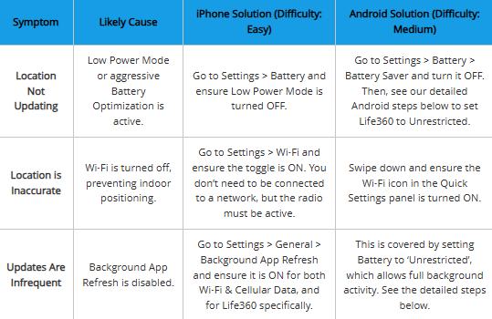 When a location isn’t updating or seems consistently inaccurate, the cause is almost always a device setting, not a problem with the app itself. Aggressive power-saving features on both iPhones and Androids are the number one culprit, as they prevent Life360 from running in the background to collect location data.