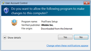 2. PodTrans is 100% clean and safe. Please click 'Yes' when User Account Control asks for permission.