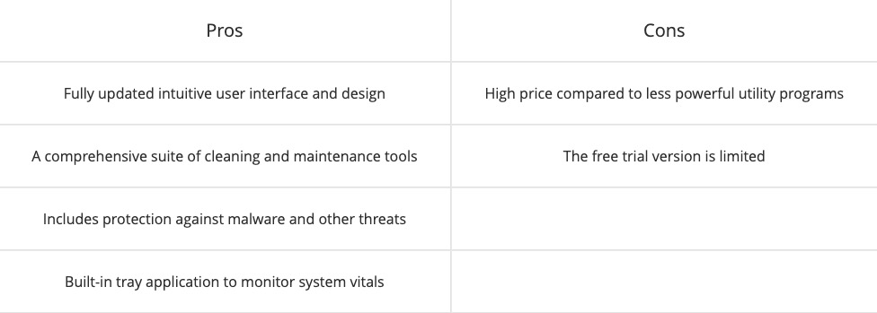 | A comprehensive suite of cleaning and maintenance tools | The free trial version is limited |