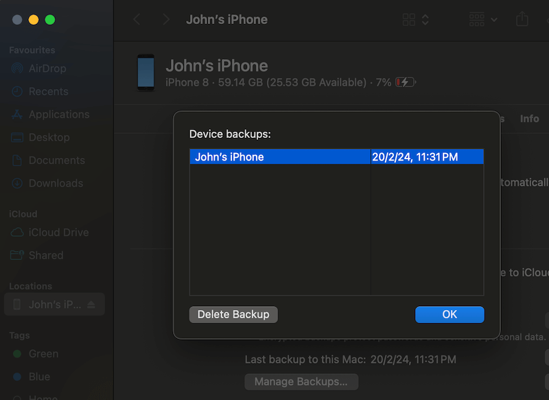 iOS backups stored on your Mac can also eat up significant storage. To delete these, open Finder (or iTunes if you are still using macOS Catalina or earlier).