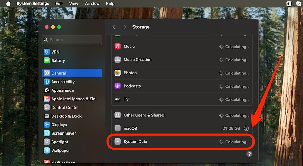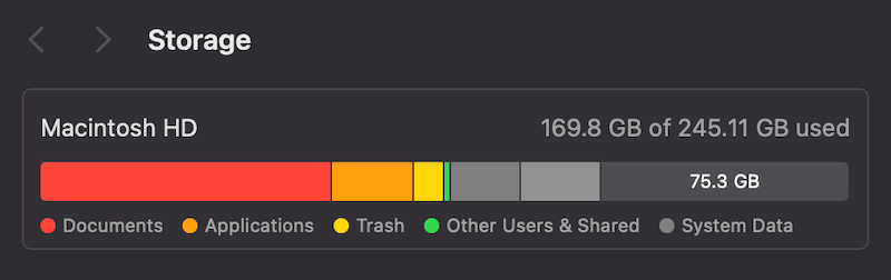If you peek at your Mac’s storage consumption (Apple Menu > About This Mac > More Info > Storage Settings), you might notice that “System Data” consumes a ton of space.