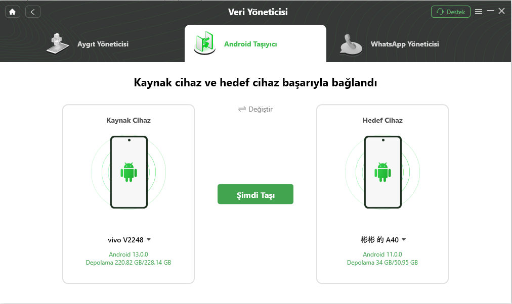 Şimdi, iMobie DroidKit’i ücretsiz olarak indirip, Android’den Android’e veri aktarımını 1 tıkla nasıl yapacağınızı öğrenmek için aşağıdaki adımları izleyin.