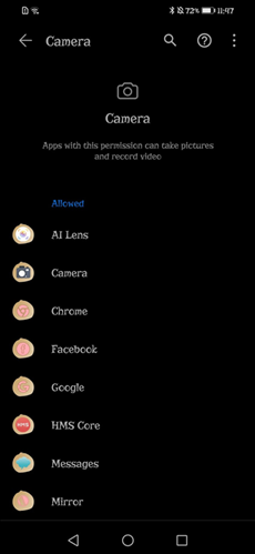 Adım2:“Kamera” veya “Mikrofon”a dokunun.