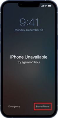 Adım 2.Security Lockout ekranında, sağ alt köşede Erase iPhone (iPhone’u Sil) seçeneğini göreceksiniz.