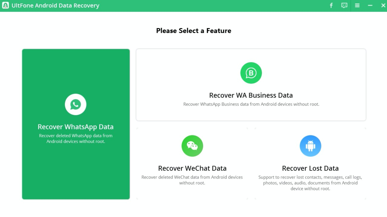 UltFone, WhatsApp ve WhatsApp Business için en kapsamlı whatsapp’ta silinen mesajları geri getirme programı olarak öne çıkar. Bu araç, kök erişimi olmadan ve yedekleme gerektirmeden Android cihazlarda kaybolan, silinen veya gizli WhatsApp dosyalarını kurtarmanıza olanak tanır. Ayrıca binlerce Android cihaz modeliyle uyumludur.